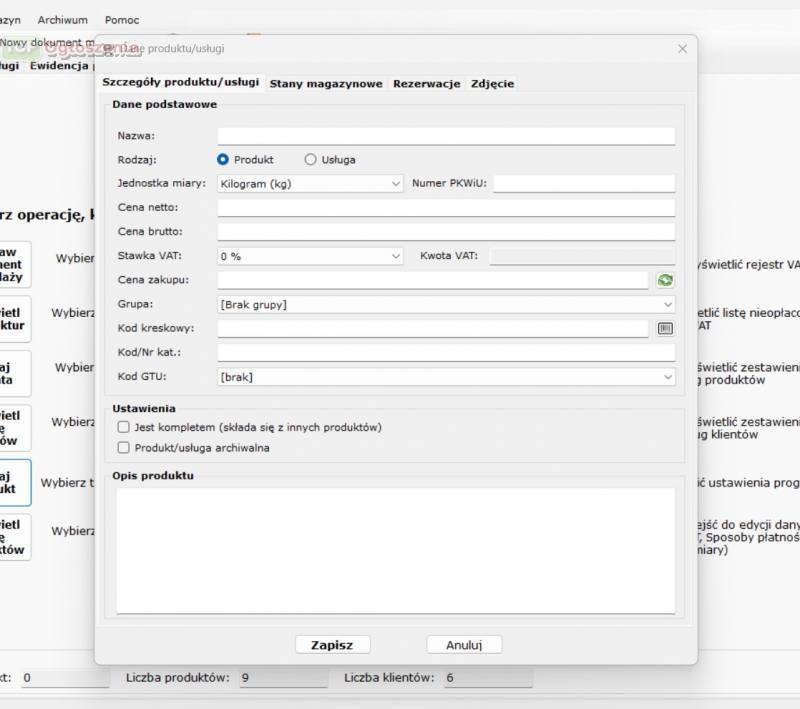 Archiwum faktur, dokumentów magazynowych, produktów i usług